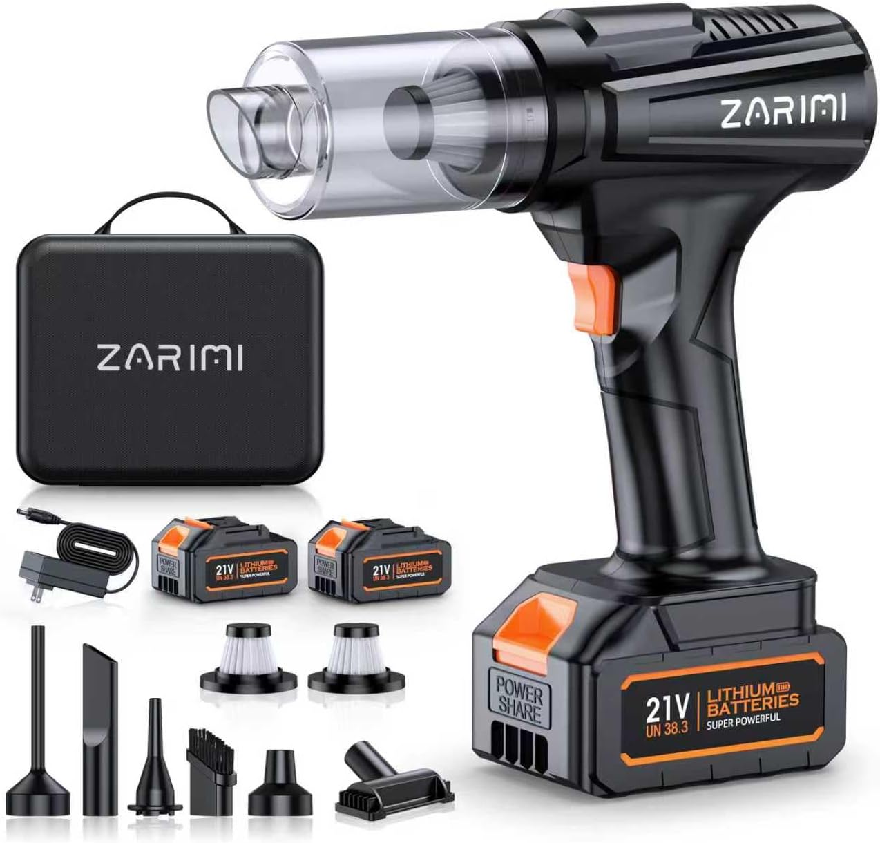 - Included Components : Battey*2, Car Vacuum Portable Cordless*1, Nozzle*6, Reusable Filters*2, Storage Bag*1