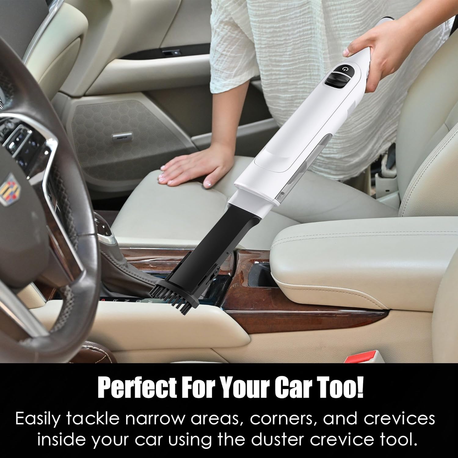 - ăLasting Power & Fast ChargingăFeaturing a high-capacity 2600mAh lithium battery and an optimized circuit system, our handheld vacuum provides uninterrupted cleaning power for up to 30 minutes on eco mode, effectively handling various cleaning situations, including car interiors.