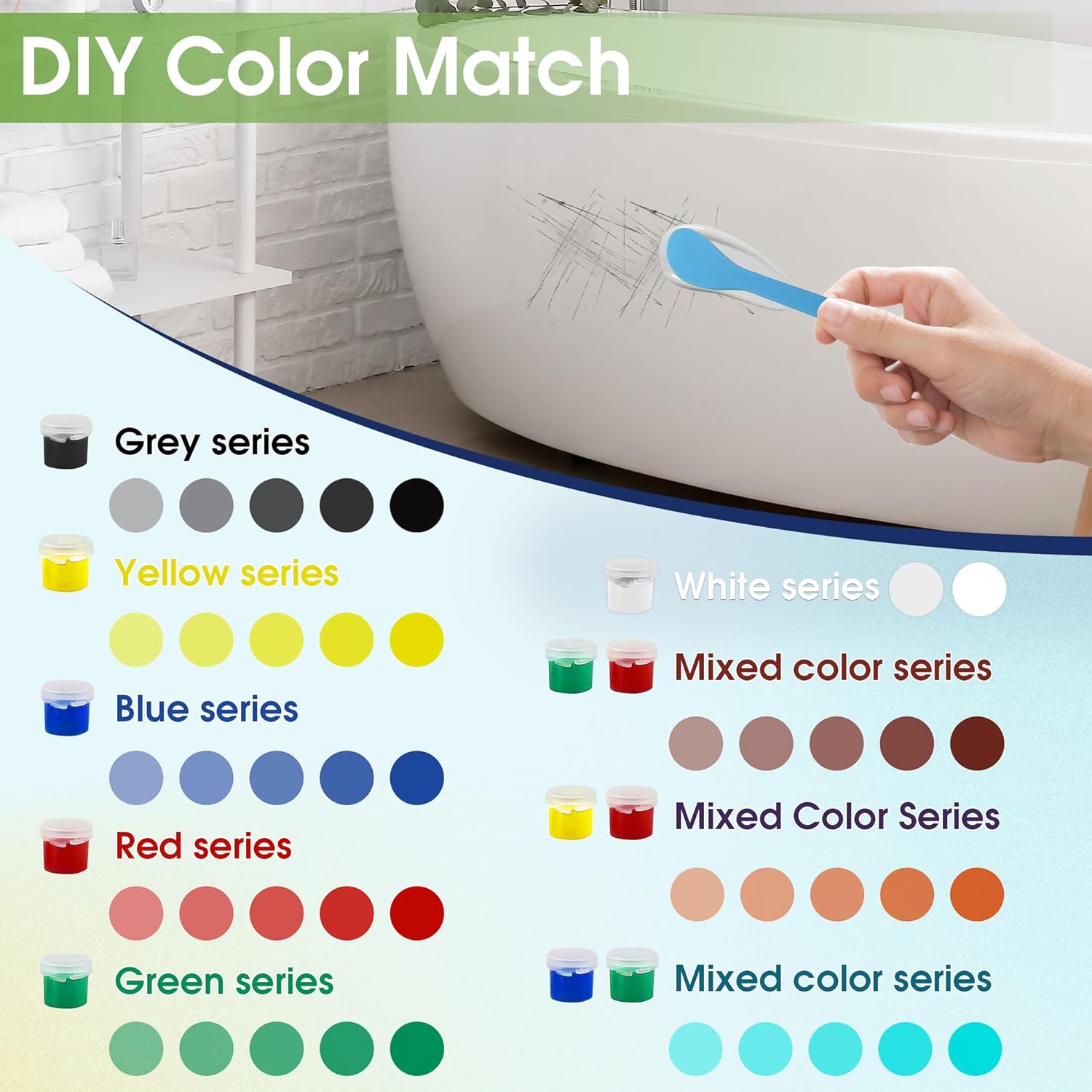 - Efficient & Easy to Use: Our kit includes white base color and 6 color pastes (red, yellow, blue, green, black, white), saving time on color matching and improving repair efficiency; Simply use the push rod to squeeze out the mixture evenly, ensuring precise mixing ratios for optimal repair results while simplifying the process for beginners
