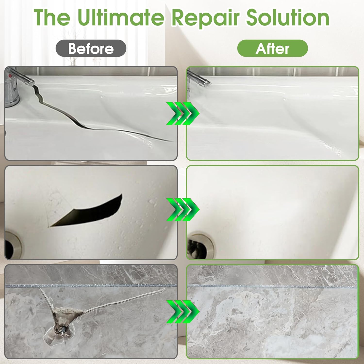 - Multi-Purpose Tub Repair Kit: This Fiberglass repair kit is not only suitable for repairing tubs, tiles, bathtubs and fiberglass showers, but can various surfaces like granite countertops, quartz countertops, ceramic sinks, marble, and even ceramic tableware and boats; The bathtub repair kit is specifically designed for DIY repairs of small area on floors, walls, and other surfaces around home; Effectively fixes chips, scratches, cracks, dents, pits, holes, enamel peeling, rus stain, etc