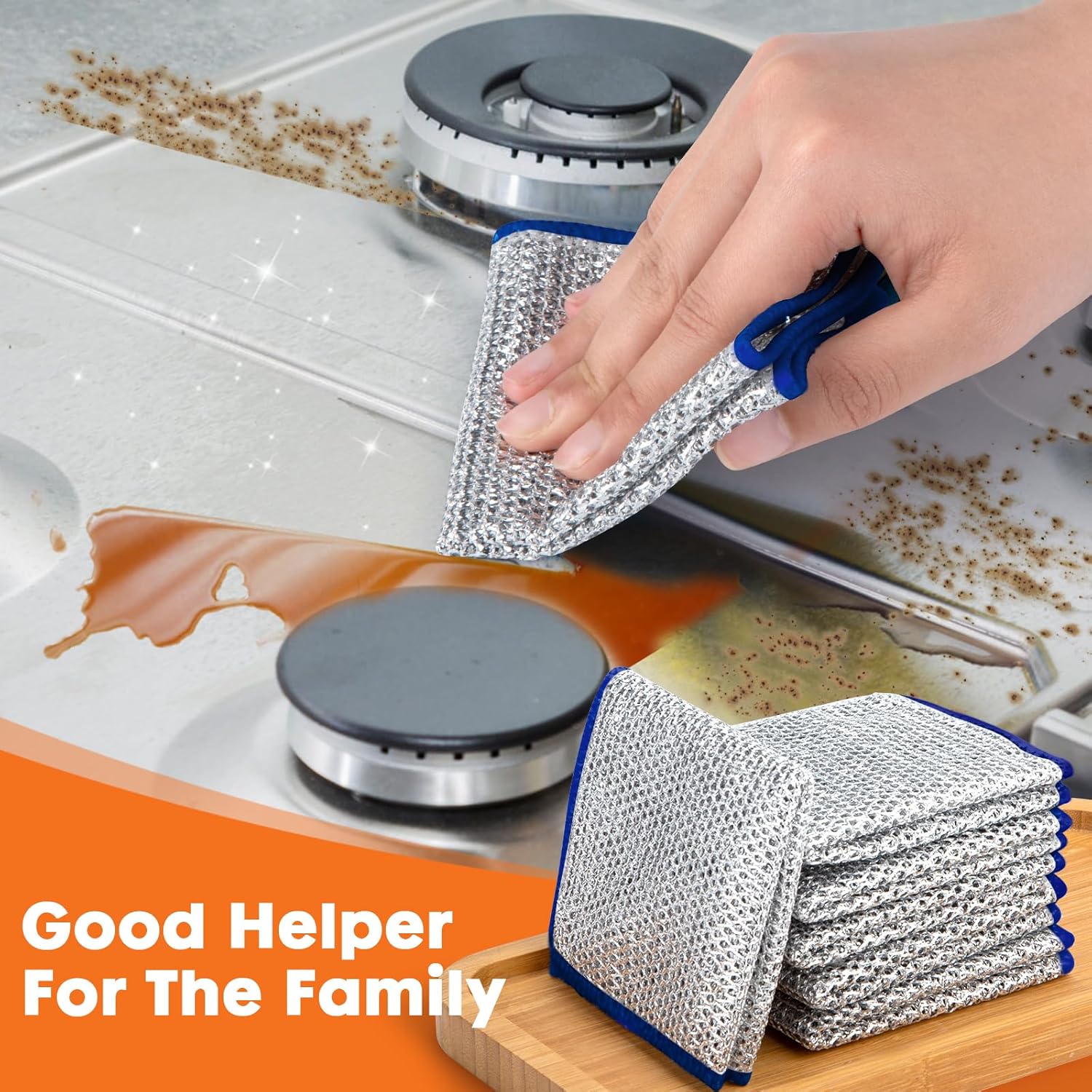 - TWO-LAYER DESIGN:Non-scratch wire dishcloth features a new two-layer, edge-sealed no-tear design. Make stainless steel wipes long lasting, not easy to unravel, can be reused many times. At the same time, there is a higher cleaning efficiency, stronger decontamination ability!