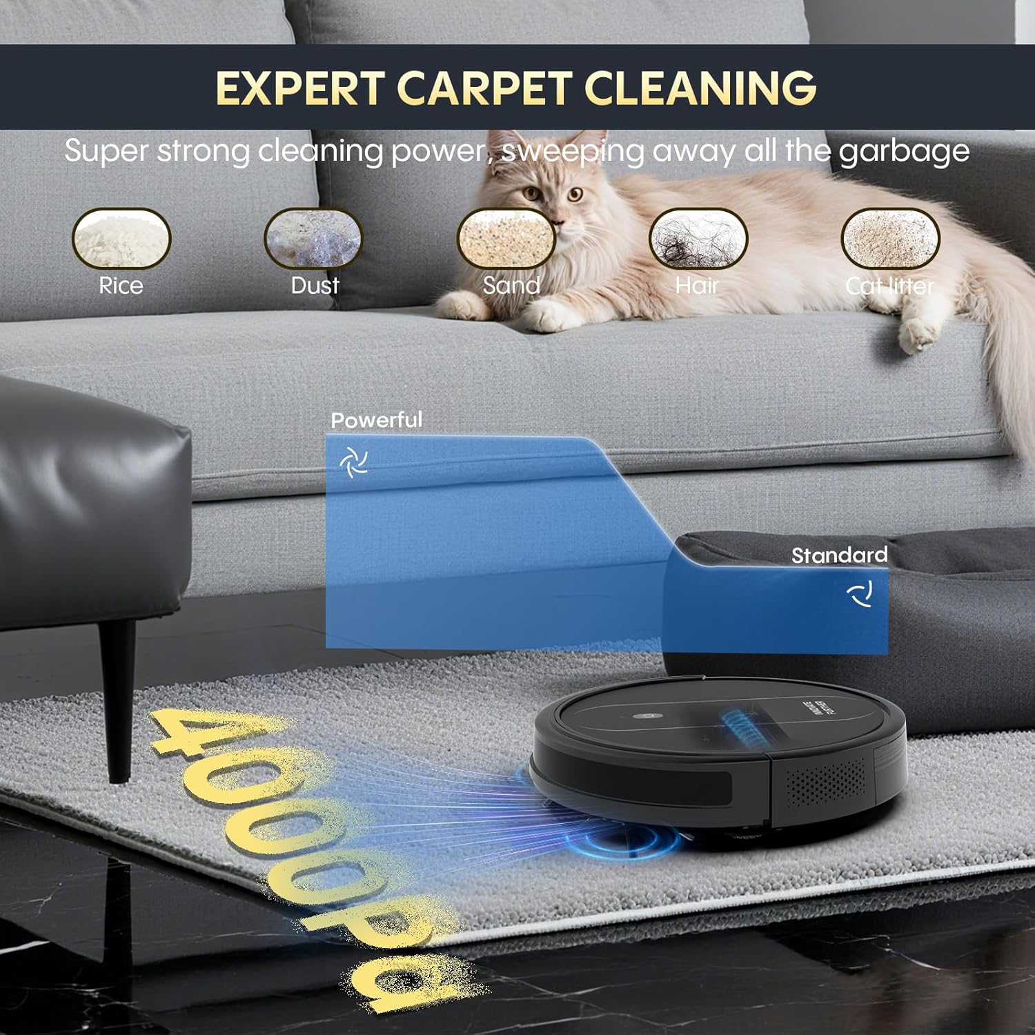 3-in-1 Robot Vacuum 4000Pa Strong Suction Robot Vacuum Cleaner & Smart Navigation & Alexa/APP Control & Auto Recharge & Central Brush, Vacuum Robot and Mop for Pet Hair (Classic Black)