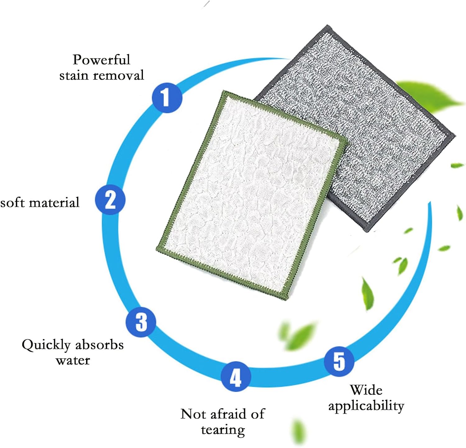 - 【Strong cleaning power】 dishwashing cloth has excellent scrubbing performance, which can easily remove stubborn stains, oil stains, and dirt. Its excellent scrubbing ability makes it an essential tool for heavy cleaning tasks, ensuring that your kitchen remains spotless.