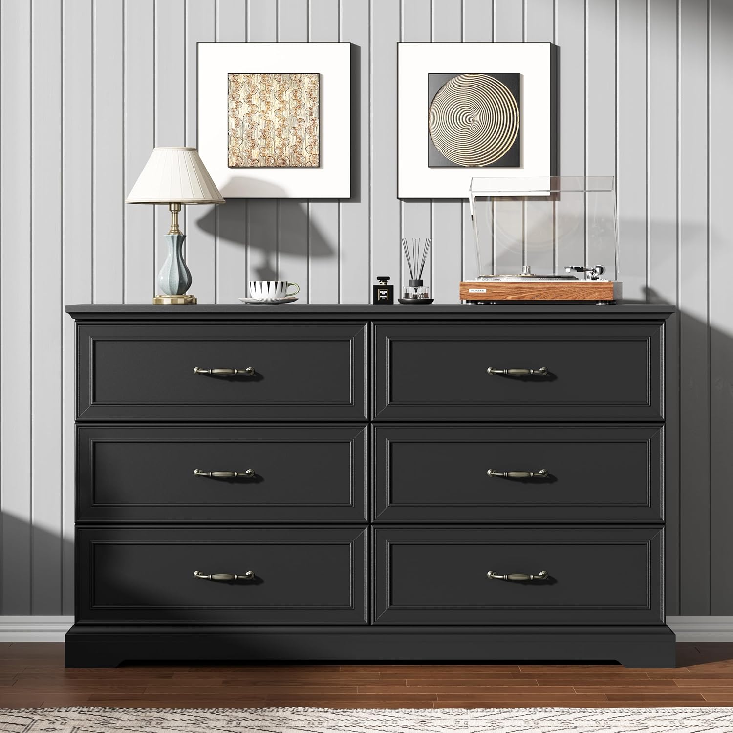 - Timeless, Refined Design: This 6-drawer farmhouse dresser for the bedroom combines sleek, contemporary lines with a refined finish, bringing elegance and character to any room. The antique bronze metal handles add vintage charm, creating a perfect balance of traditional and modern design. Whether used as a modern dresser, a storage dresser, a bedroom dresser, or a tall dresser for closet, this piece serves as both a functional storage solution and a stylish focal point in your space.