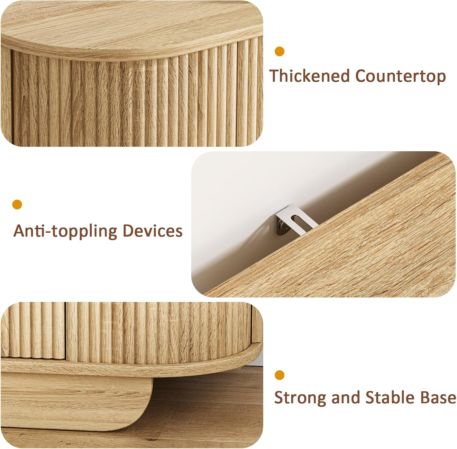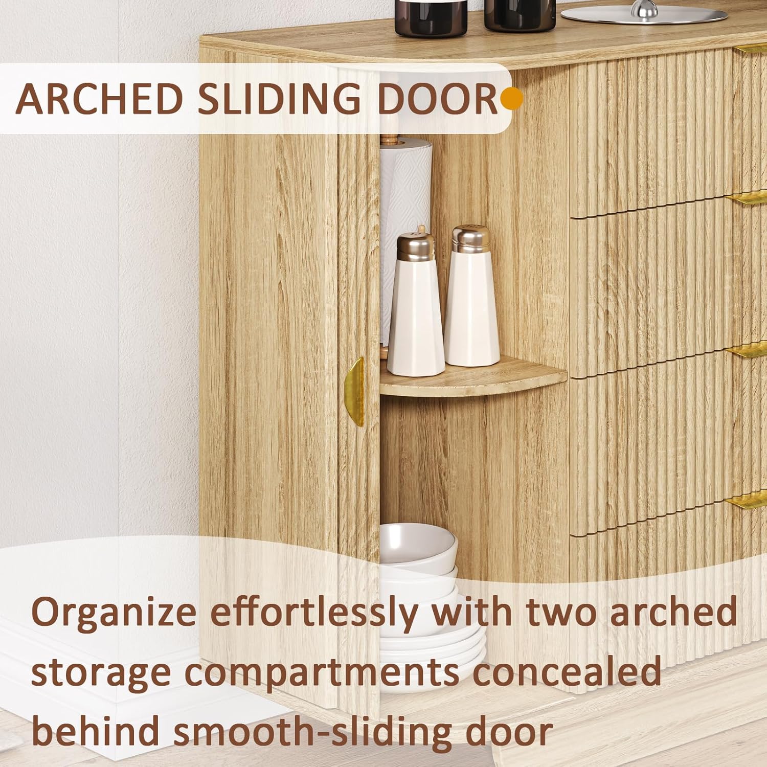 - 【Practical & Stylish Dresser】This dresser is specially designed with curved edges,and equipped with easy sliding doors,making it a perfect wood dresser. The fluted design features long and vertical indentations carved into the surface of the dresser. These Flutes bring a sense of texture, elegance, and visual interest to the cabinet doors, creating a distinctive look.