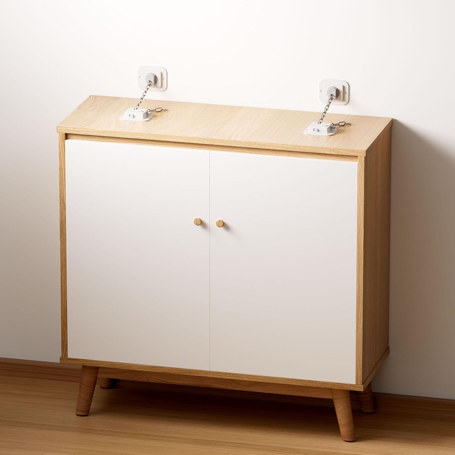 - COMPLETE KIT: Includes all necessary components - adhesive mounting plates, metal chains, and installation hardware for multiple furniture pieces