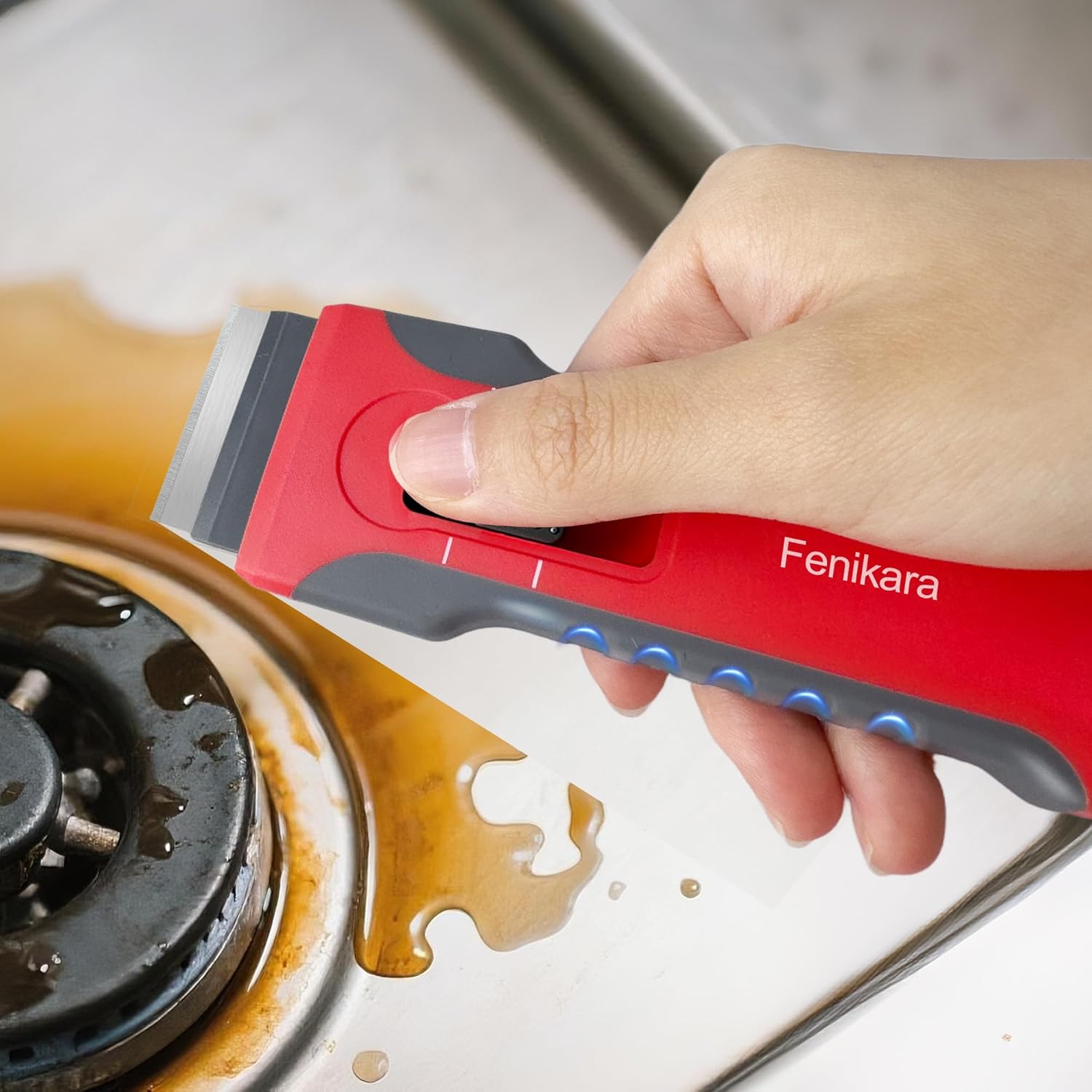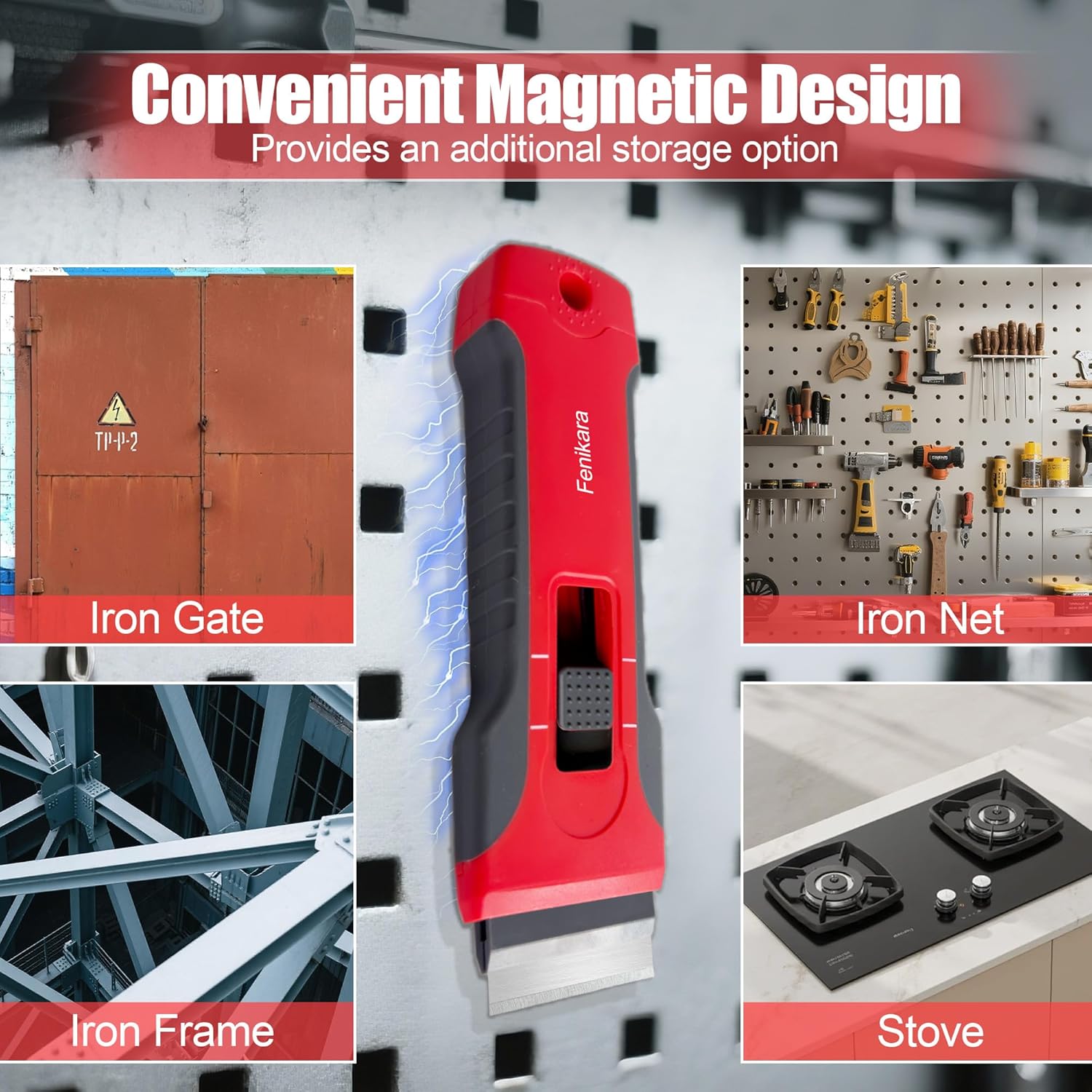 - 【Upgraded Retractable Magnetic Scraper】 Fenikara plastic razor blade scraper—now upgraded for ultimate performance! With enhanced materials and an optimized internal structure, you’ll never have to deal with the awkward moments of a retracting blade again. The reinforced core components ensure you can confidently tackle tough and heavy-duty cleaning tasks.
