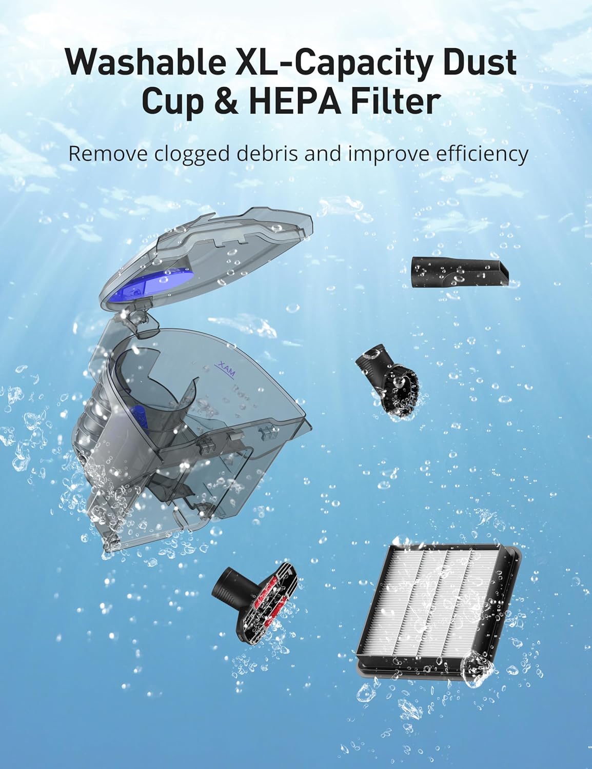 • XL Capacity Dust Cup: Don't need dust bags thanks to the bagless and washable design; 3.7QT large dust cup reduces how often you must empty it and improves cleaning efficiency compared to standard 2QT small-capacity dust cups